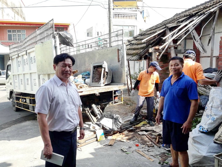 ▲古坑鄉朝陽村長邱寶賢(左)主動聯擊鄉公所清潔隊,為遭歹徒撞倒的磚造民宅廢棄物清運服務。(圖/記者張立明攝) 【亞太新聞網/記者...2017/10/17